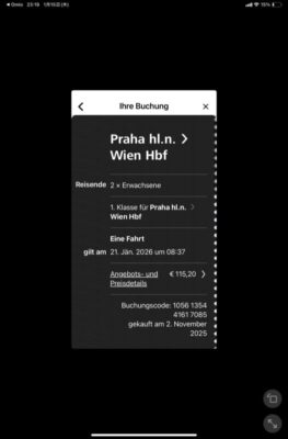 難題はOBB(オーストリア鉄道)でした。ネットで欧州の旅行サイトで予約しましたが指定席迄は取れませんでした。どうもPDFで切符持参と書いてありましたが上手く出力できませんでした。仕方ないのでOBBのHPの予約ができたところをスクリーンショットで持参しました。前日ホームに上がり駅員3人に見せて聞きましたが?でした。「みどりの窓口」らしきところへ行き聞きますとどうやらQRコードがいるようでした。「!」ときたので再度ポケトークでドイツ語を翻訳してPDFのボタンを探し出しました。無事QRコードを出せました。すぐ走っていって先ほどの窓口の叔父さんにお礼方々お見せしました!・・・めでたしめでたし・・・w
