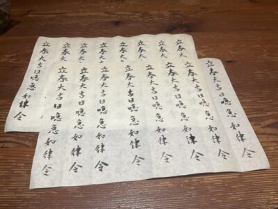 早朝に起床して墨をすり、恒例のお札書きをしました。