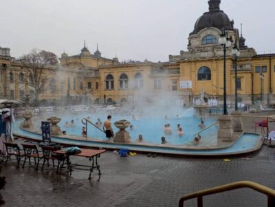 ブダペストでは屋外の温泉にも水着で入りました。屋外は雪が積もっていました。気温は6℃で水温は38℃でした。なかなかのチャレンジでした🤭