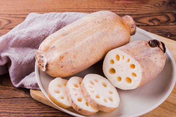 豆知識:れんこんの穴に酢を少量入れて茹でると、白く美しい仕上がりになります。