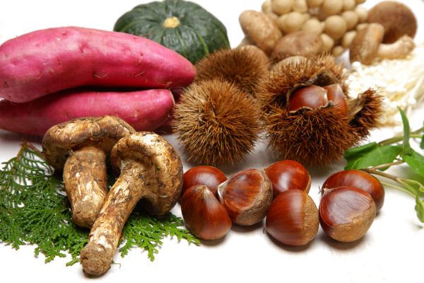 さつまいも、栗、きのこ、柿、ごぼう、れんこん、ナッツ類、秋の魚…