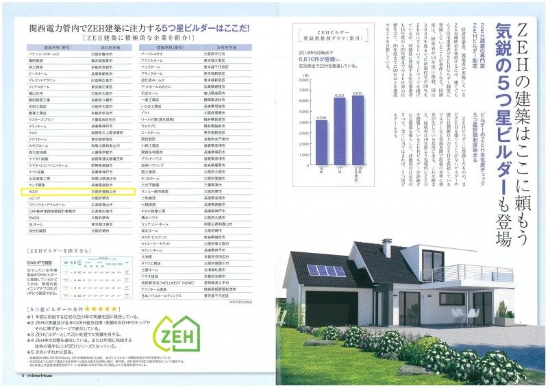 「月間スマートハウス」関西電力 オール電化×ZEH 特別号 2018-11-01 / K.S(ホームアドバイザー) 営業の関戸です。 関西電力様の「月間スマートハウス」にZEHの特別号の記事があり、 ヨネダが関西電力管内でZEH建築に注力する「5つ星ビルダー」と取り上げて頂きました。 ヨネダではZEH住宅のWithを皆様にご提供して、SIIから5つ星ビルダーを頂いています。 国を挙げて推進しているZEHをこれからも、お客様へ分かりやすくご提案していきたいと思います。