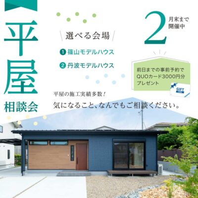また、丹波市、丹波篠山市では、2月末まで平屋の相談会を行っています!