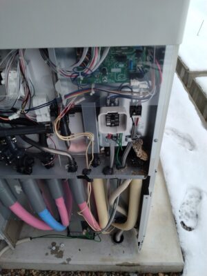 定期点検をさせて頂く際に、エコキュートの基盤付近の確認をしています。