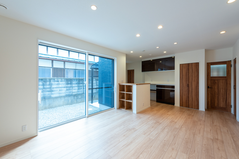 玄関にはオ-プンなシュ-ズ収納棚を設けて、こだわりのス二-カ-ををいつも眺められます。