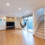 オープンキッチンや遊び心のあるハンモックがあるLDK。