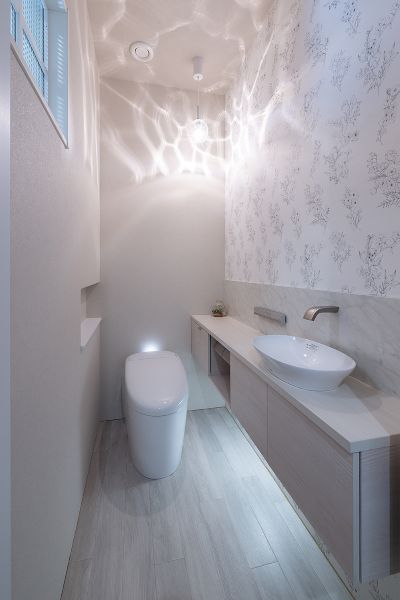 照明の反射が美しい、こだわりのオシャレトイレ。