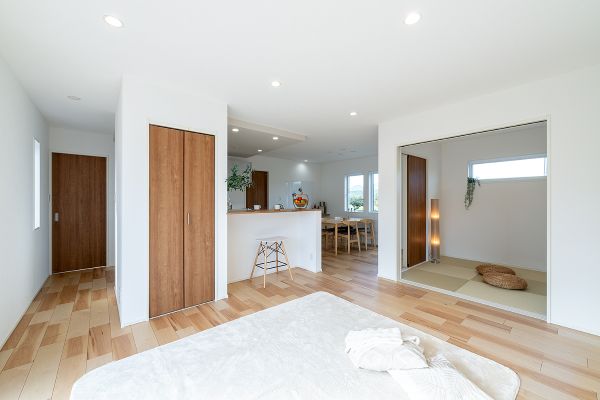 リビングとつながる和室は、扉を閉めると個室としても使える柔軟な空間。