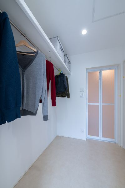 ユーティリティーから脱衣室兼ファミリークローゼットまで一直線につながるコンパクト動線。