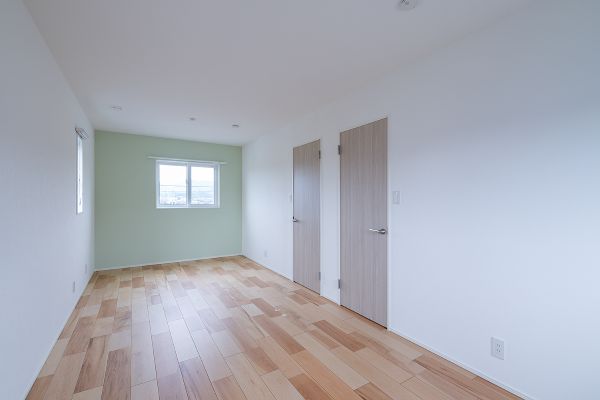 将来は間仕切りをして、ライフスタイルに合わせて2部屋にできる子ども部屋。