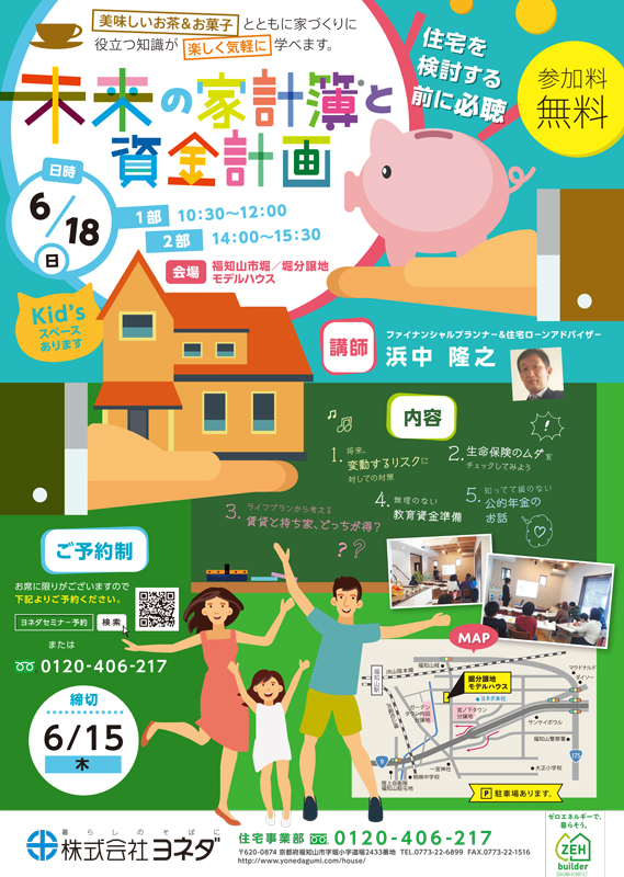 6/18(日)「未来の家計簿と資金計画」セミナ-開催します。~予約制~