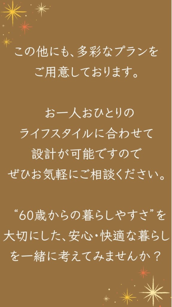 60歳からの暮らしにぴったりの平屋住宅で、快適で健康に過ごせる住まいを考えてみませんか。