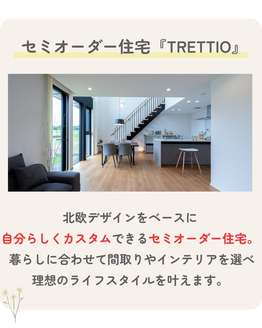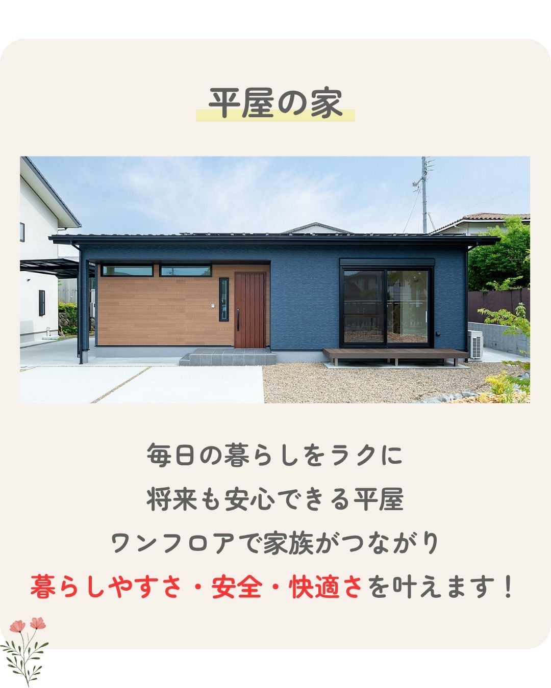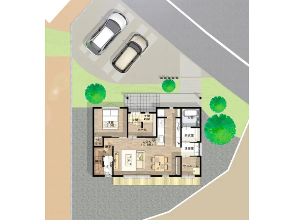 一階に寝室を設けた“平屋のように暮らせる設計”も可能で、将来まで安心の住まいづくりが叶います。