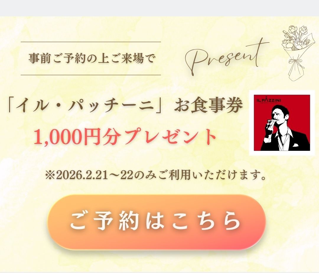 「イルパッチーニ お食事券 1,000円分」をプレゼント🎁