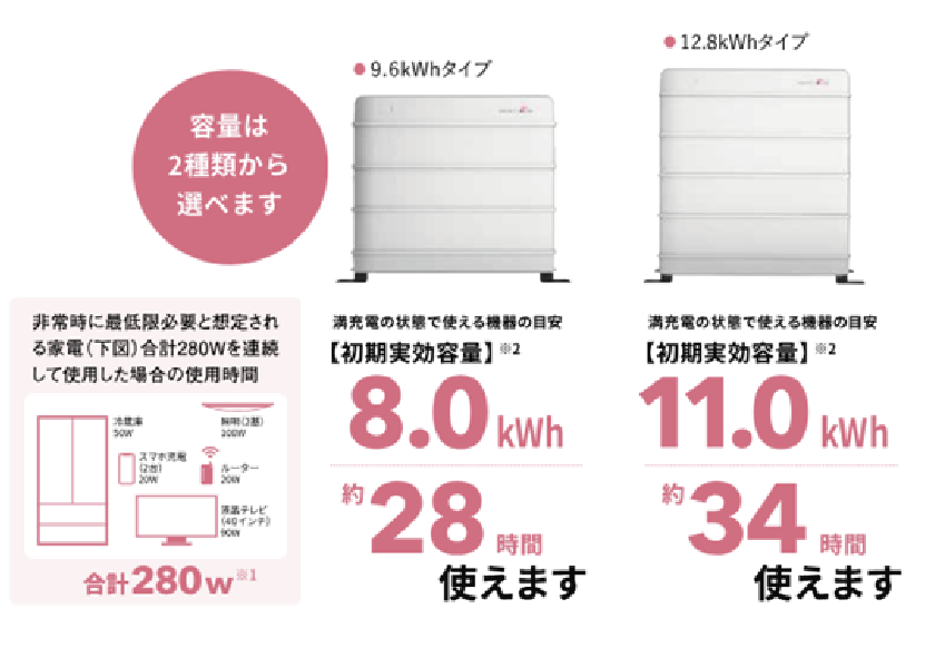 ほぼ1日分の電力を貯めることができ、災害時には長時間電気を使うことが可能