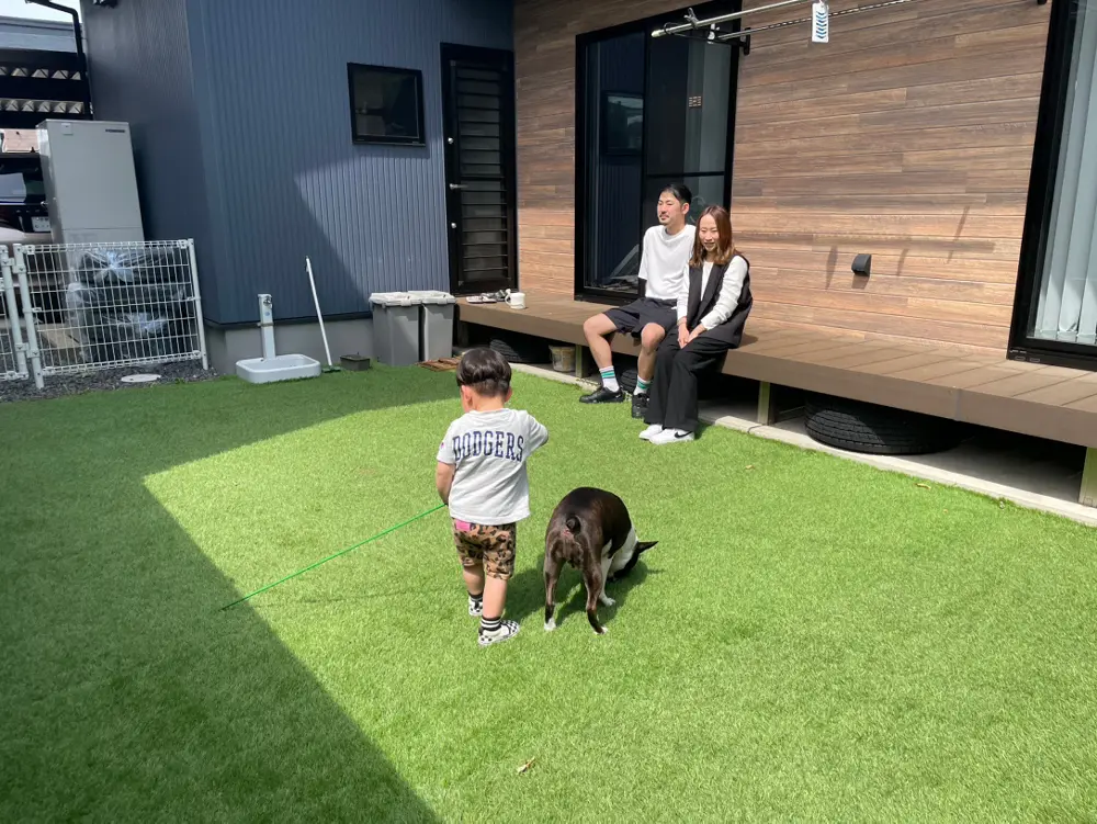 道路に面していないので、犬も子どもも安心して自由に遊ばせています。