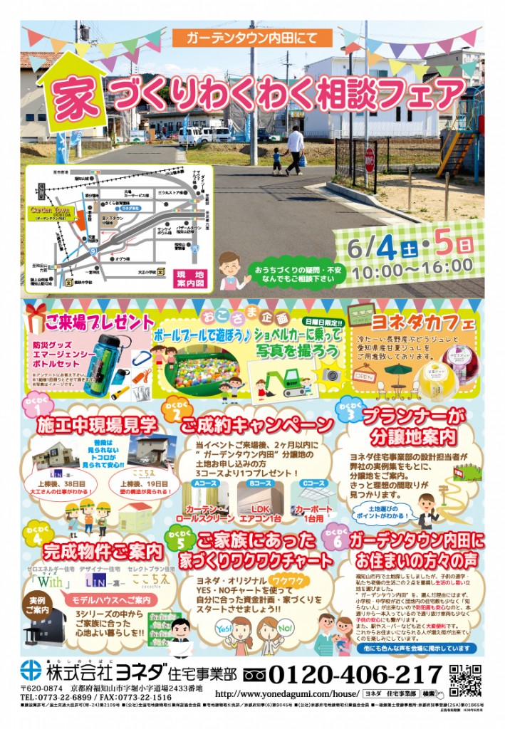 今週末、福知山市堀「ガーデンタウン内田」分譲地にて、『家づくりわくわく相談フェア』を開催致します。