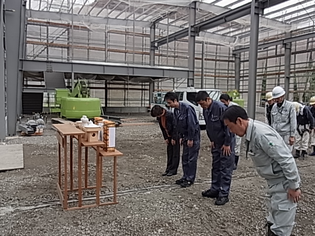 和幸産業株式会社様舞鶴工場新築工事の竣工祭を社員様の多数出席の元、催しました。これより機械の設置が始まります。