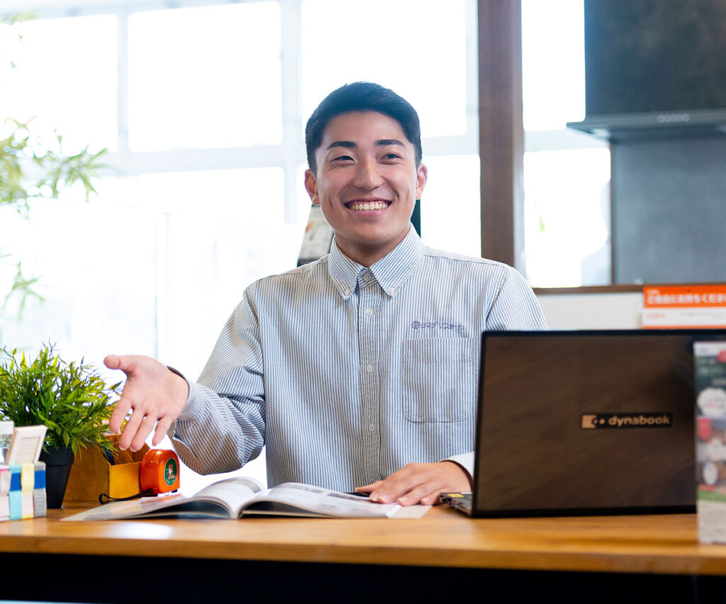 福知山出身で23年間福知山で生活しています。地元出身ということもありお客さんや職人さんに顔見知りが多いです。