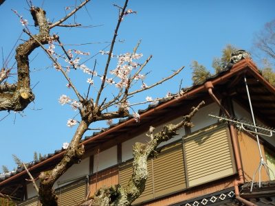 敷地内に立つ一本の梅の木をふと見上げると、膨らみ始めた蕾が目に留まりました。