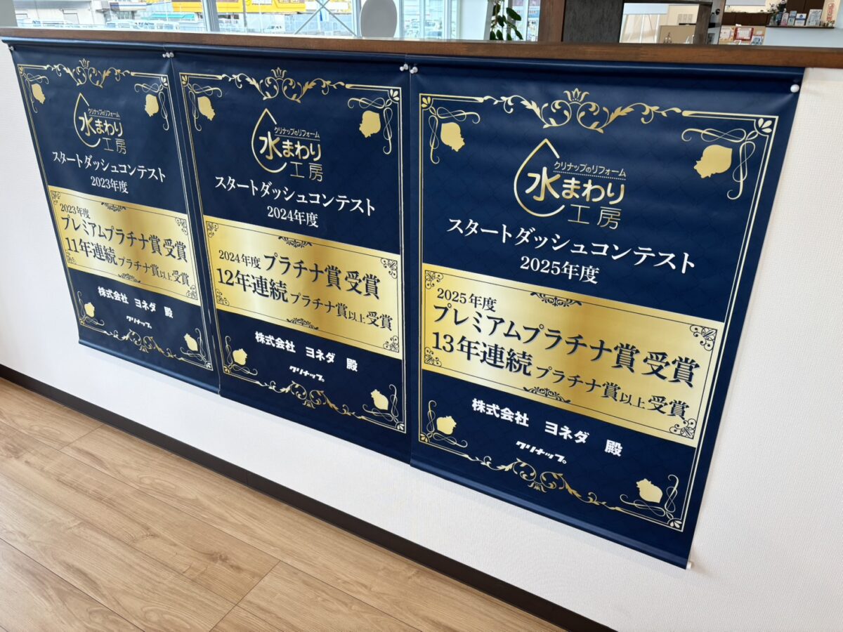 さて今回は設備機器メーカー クリナップさんが主催している水まわり工房 スタートダッシュコンテストでプレミアムプラチナ賞を頂きました。↓画像をみて頂くとわかりますが、13年連続プラチナ賞以上受賞と私のリフォームキャリヤの半数期間頂けている賞になります。