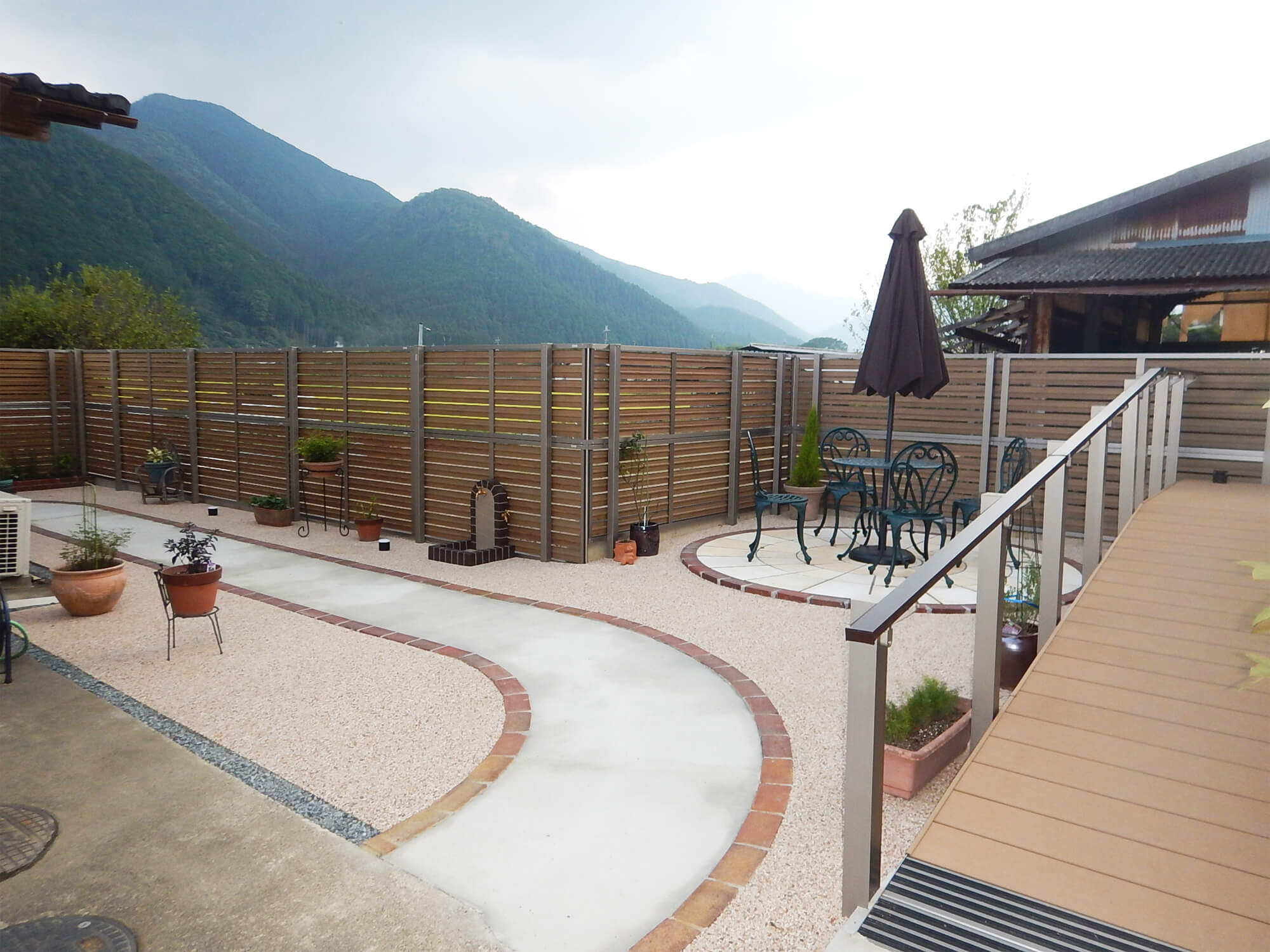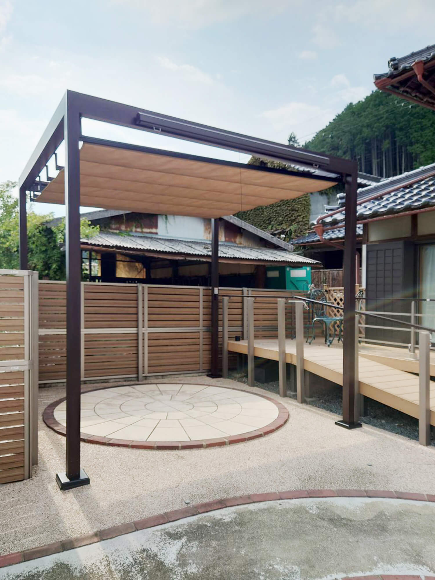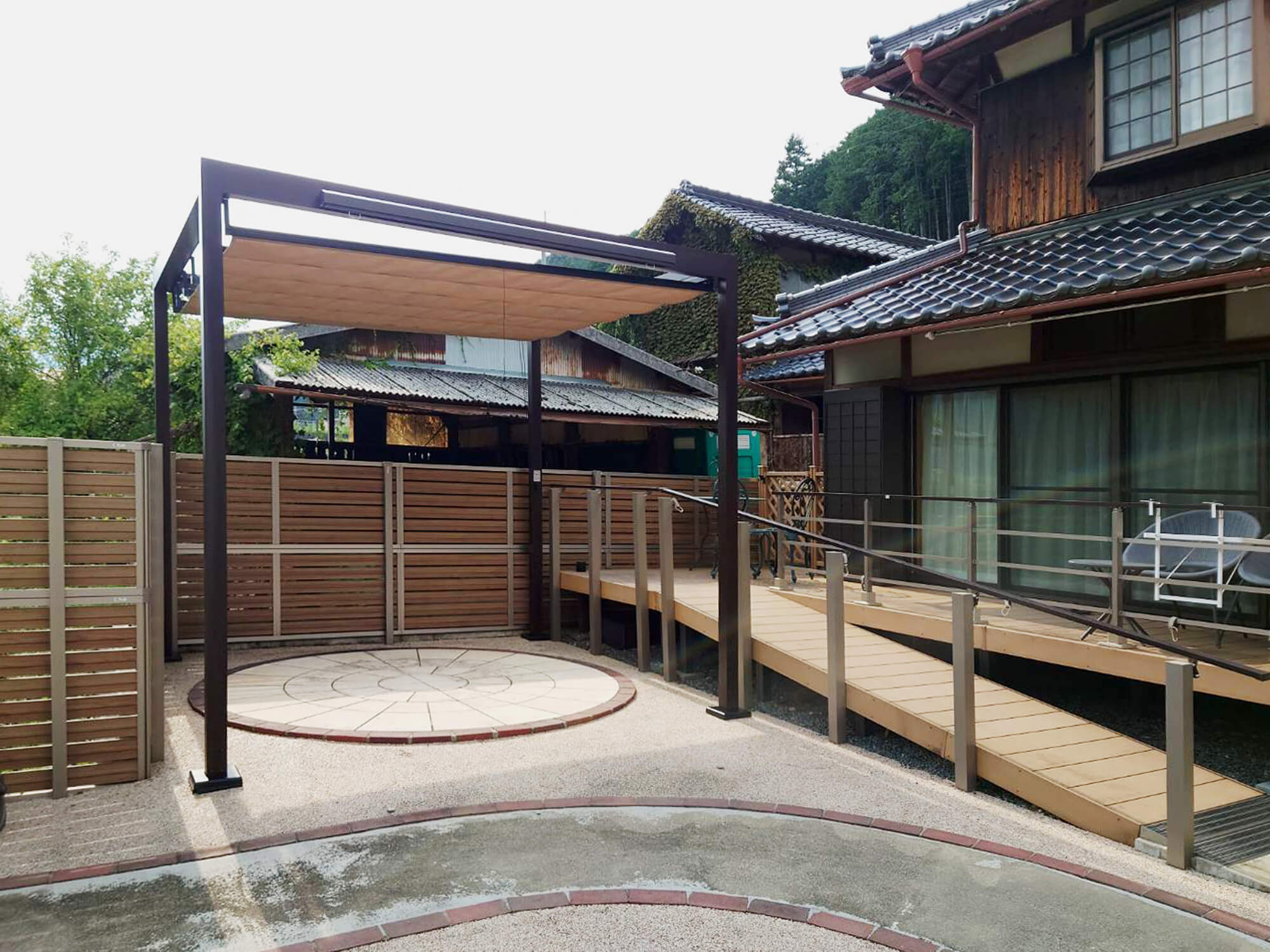 丹波市|ご近所が集まる庭に 日除け&目隠し付きの安心テラス空間