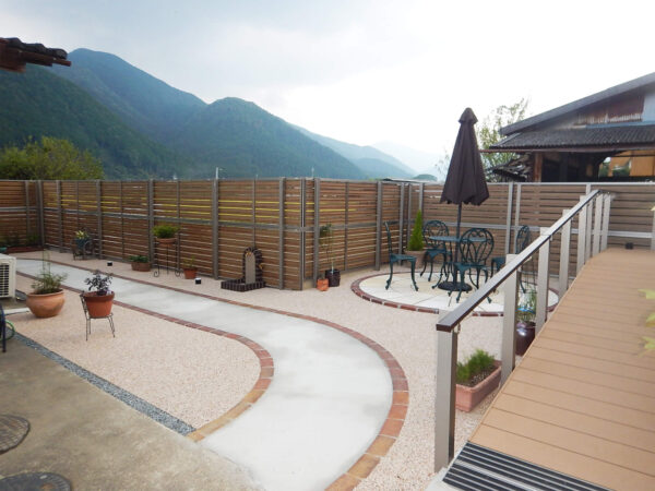 ご近所の方との交流や、家族との時間、そしてご自身のリラックスの場にもなる“屋外リビング空間”として、非常に満足いただいています。