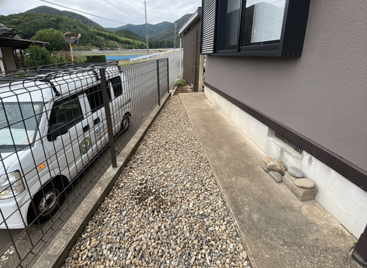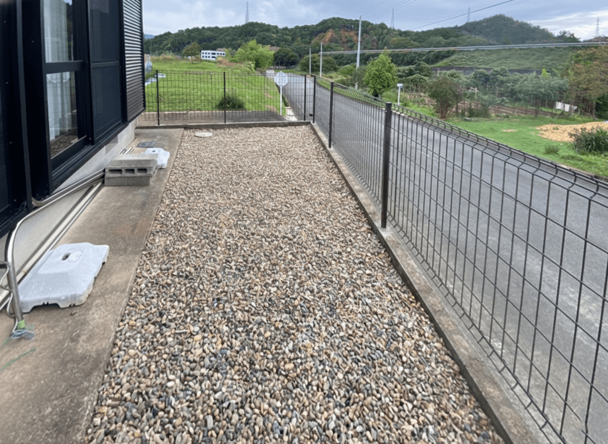植栽が占めていたスペースをフェンス+砂利へと変えることで、外観が一新され、来訪者にも明るく洗練された印象を与えます。