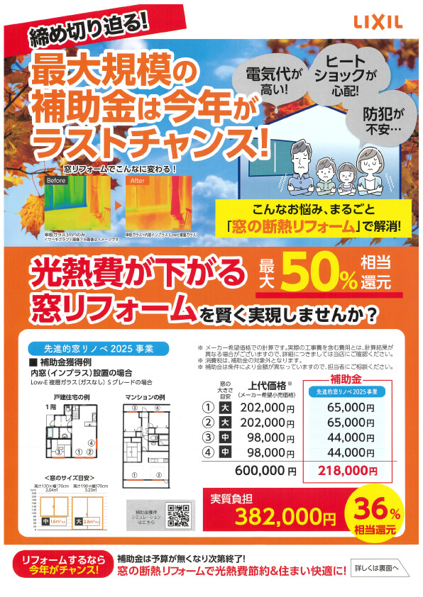 🔸国の補助金「先進的窓リノベ2025事業」で最大50%相当還元!