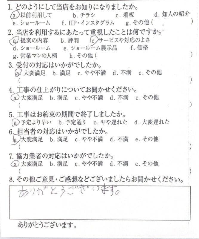 7. 協力業者の対応はいかがでしたか。