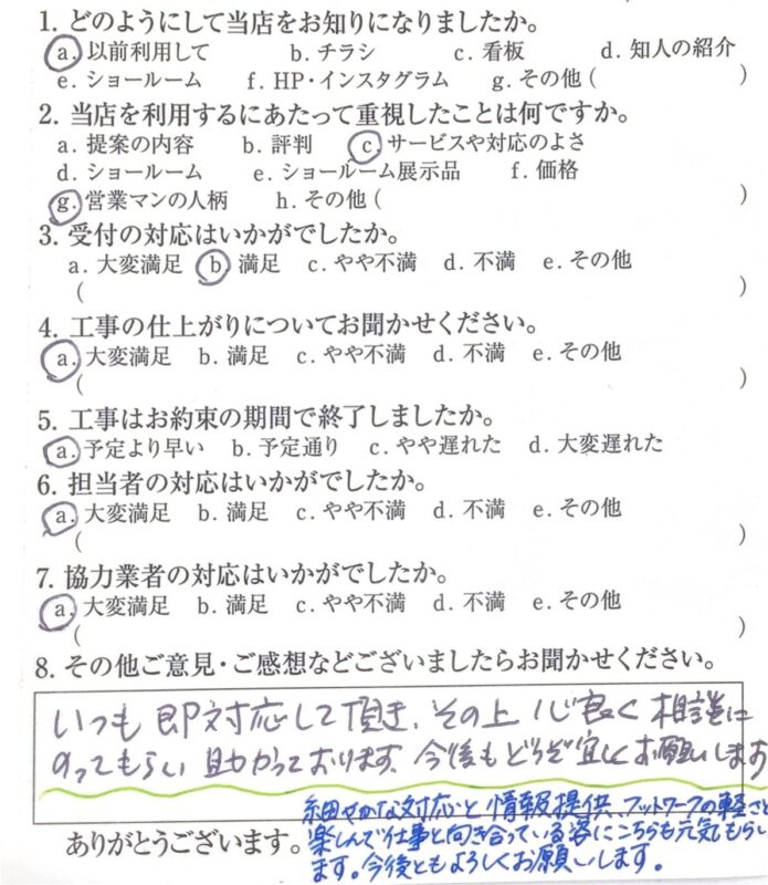 いつも即対応して頂き、その上心良く相談にのってもらい助かっております。