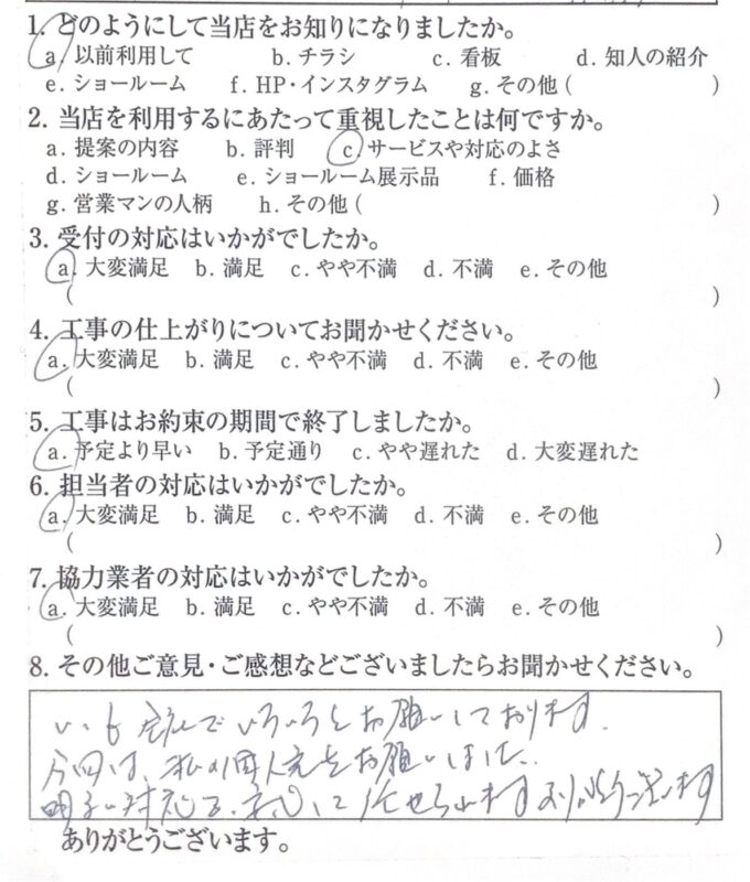 今回は私の個人宅をお願いしました。明るい対応も安心して任せられます。
