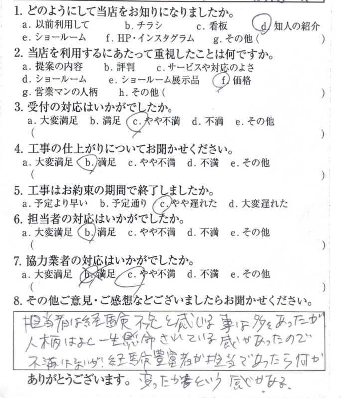 担当者は経験不足を感じることは多々あったが人柄はよく一生懸命されている感があったので不満はないが経験豊富者が担当であったなら何か変わったかもという感がある。