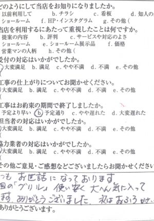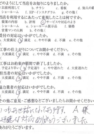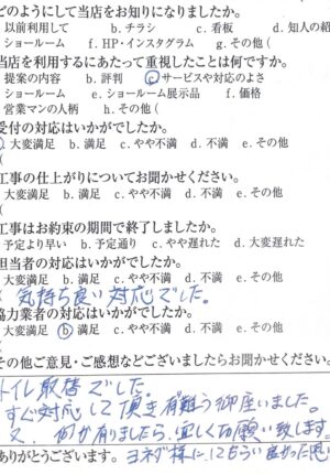 ヨネダリフォームでは、施工後、お客様にアンケートはがきをお渡しし、サービスの向上に努めております。