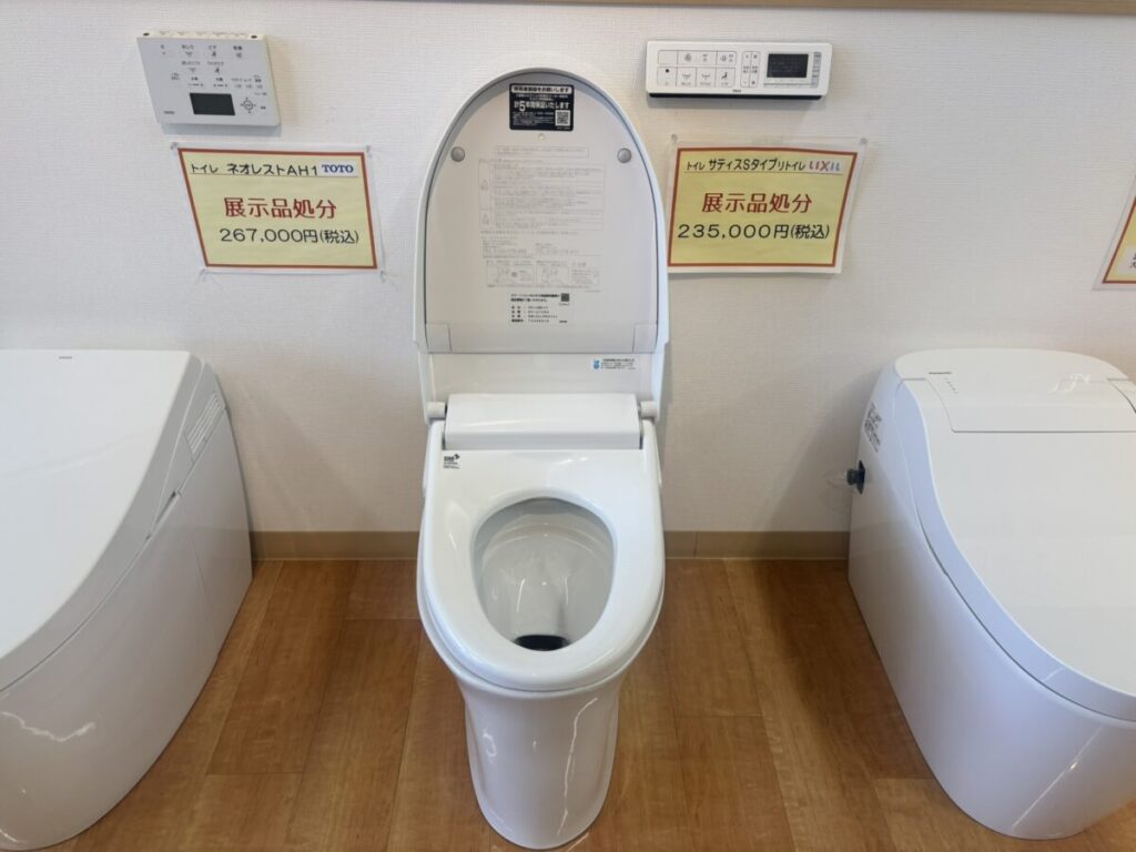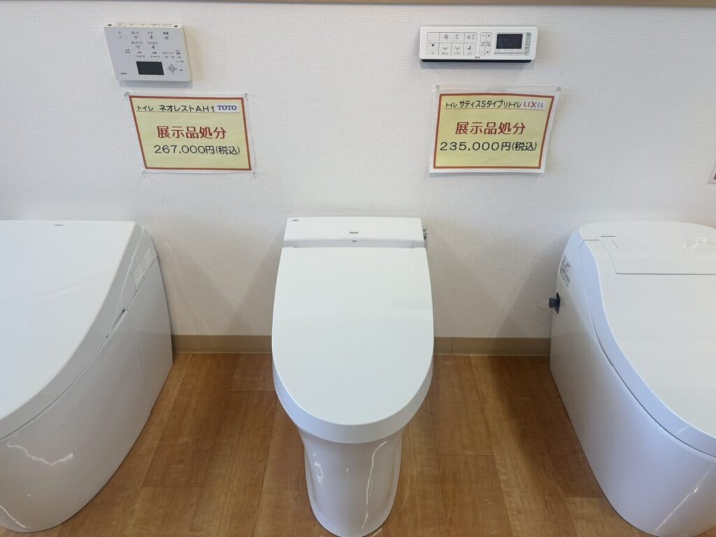 さて、本日は展示販売品のトイレのご紹介をしたいと思います!現在2つの商品販売中です!