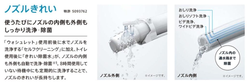 除菌水でノズルを自動的に洗浄してくれます。
