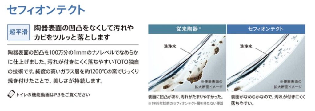 陶器の表面がミクロな汚れも溜まる隙間がないほどツルツル、汚れをよせつけず、落としやすい素材です。
