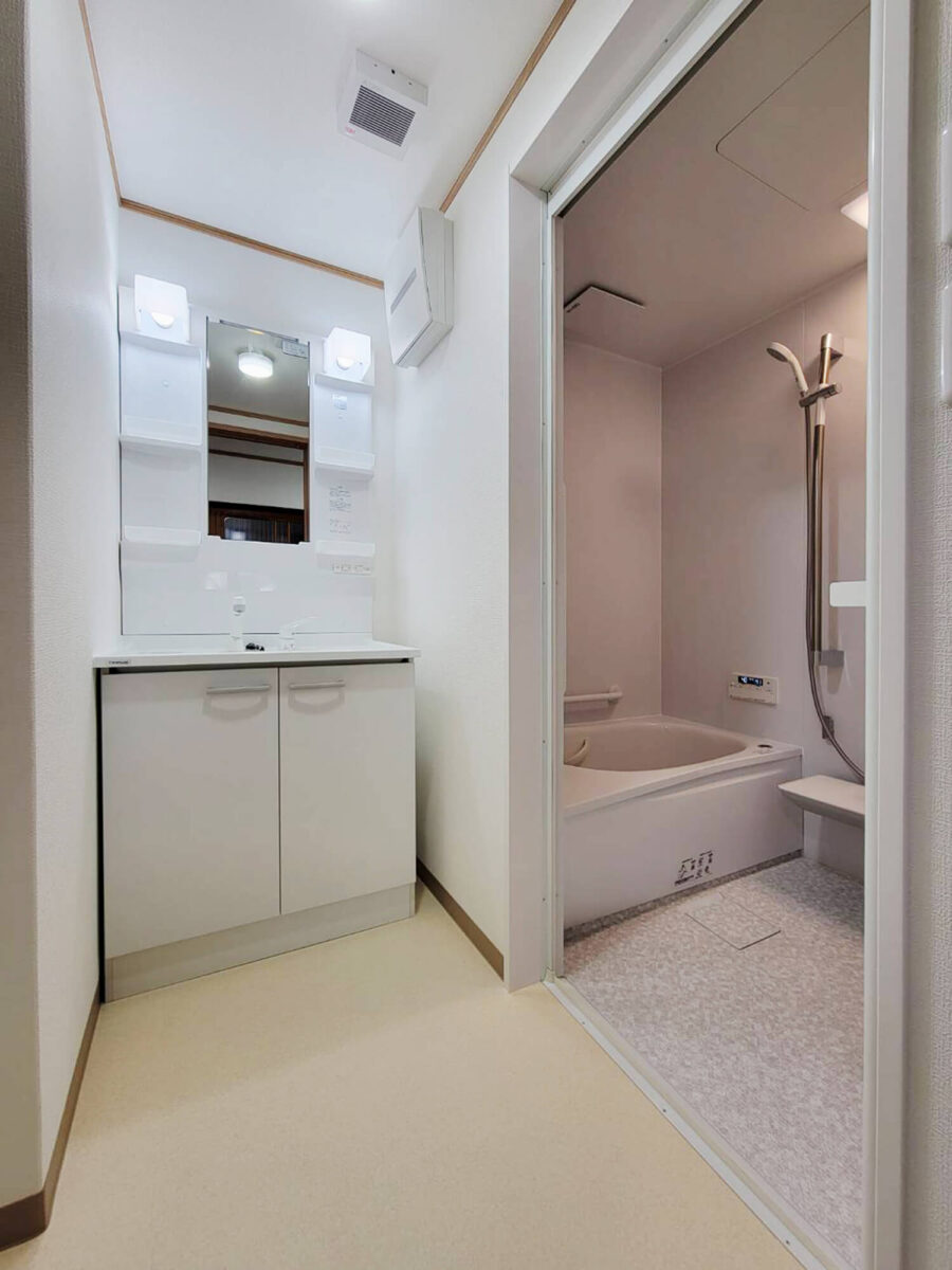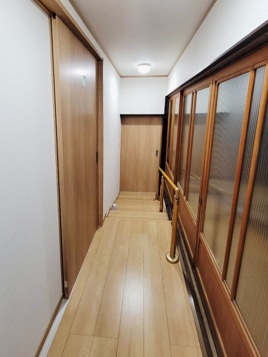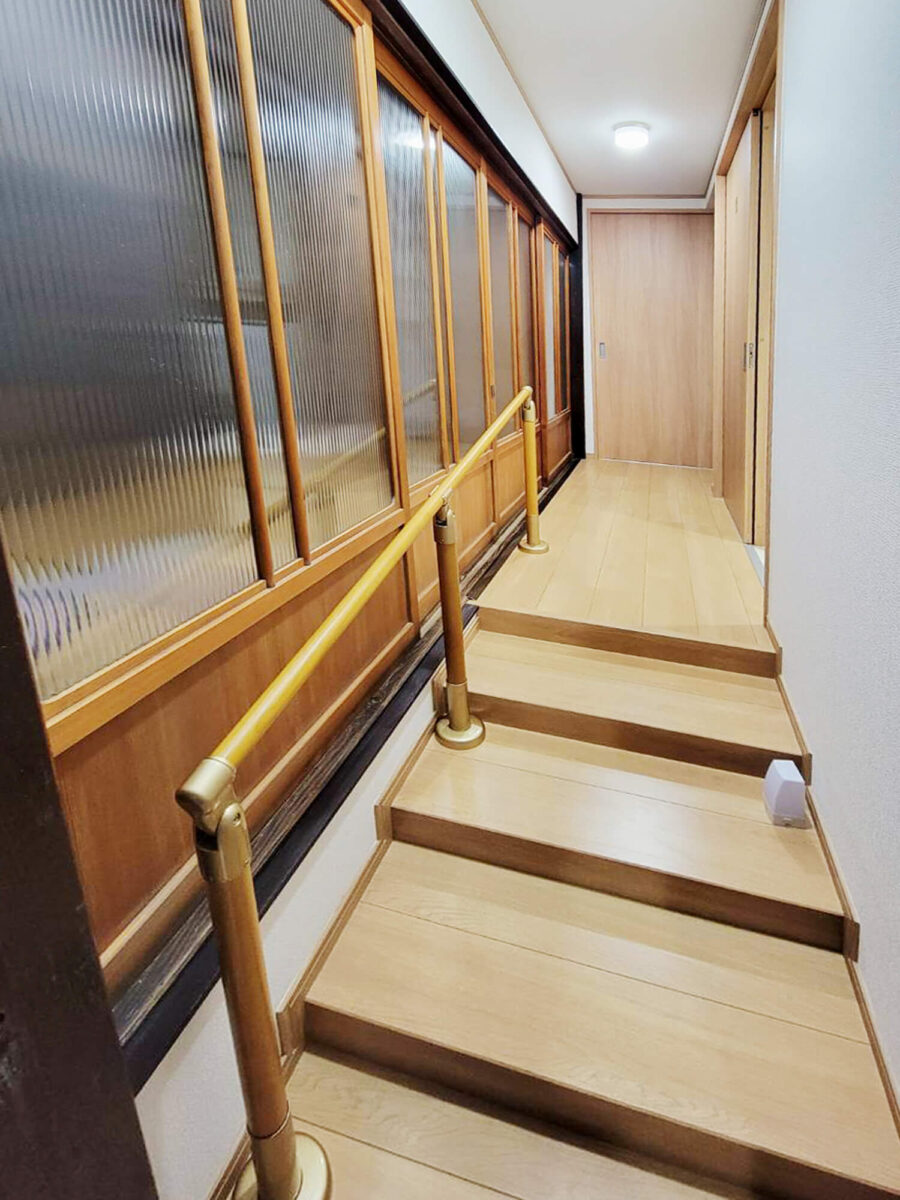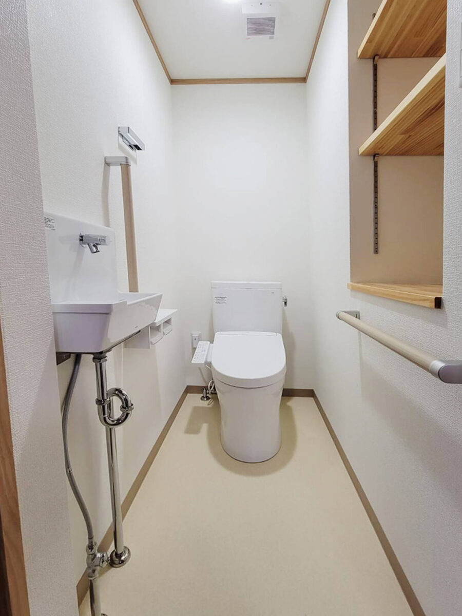 各水廻りに行くまでに段差が多かったので、水廻りを固めて、段差なく生活できるようにさせて頂きました。
