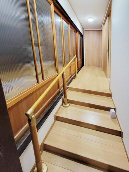 ステップのある部分や通路には手すりを取り付けて安全性を高めました。