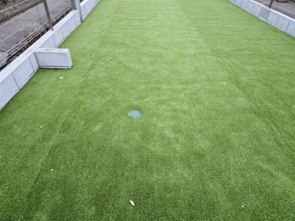 人工芝を敷いていく中で「ここならパターゴルフができそうですね」というお話になり、急きょホールカップを手配して設置することに。