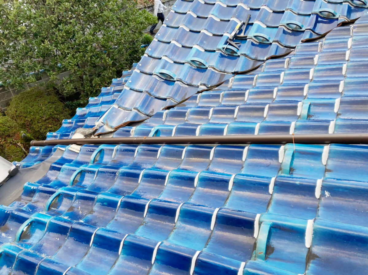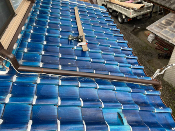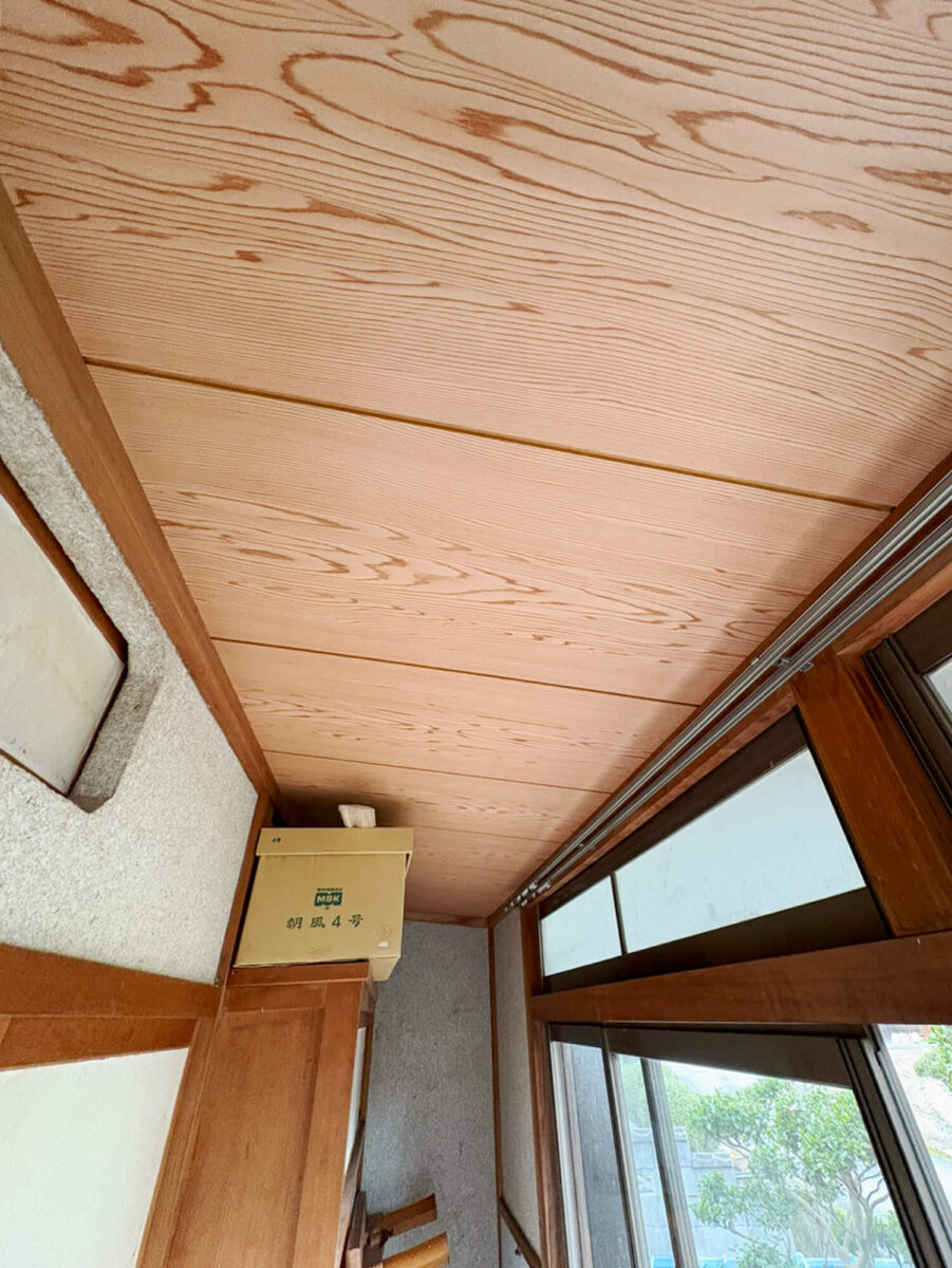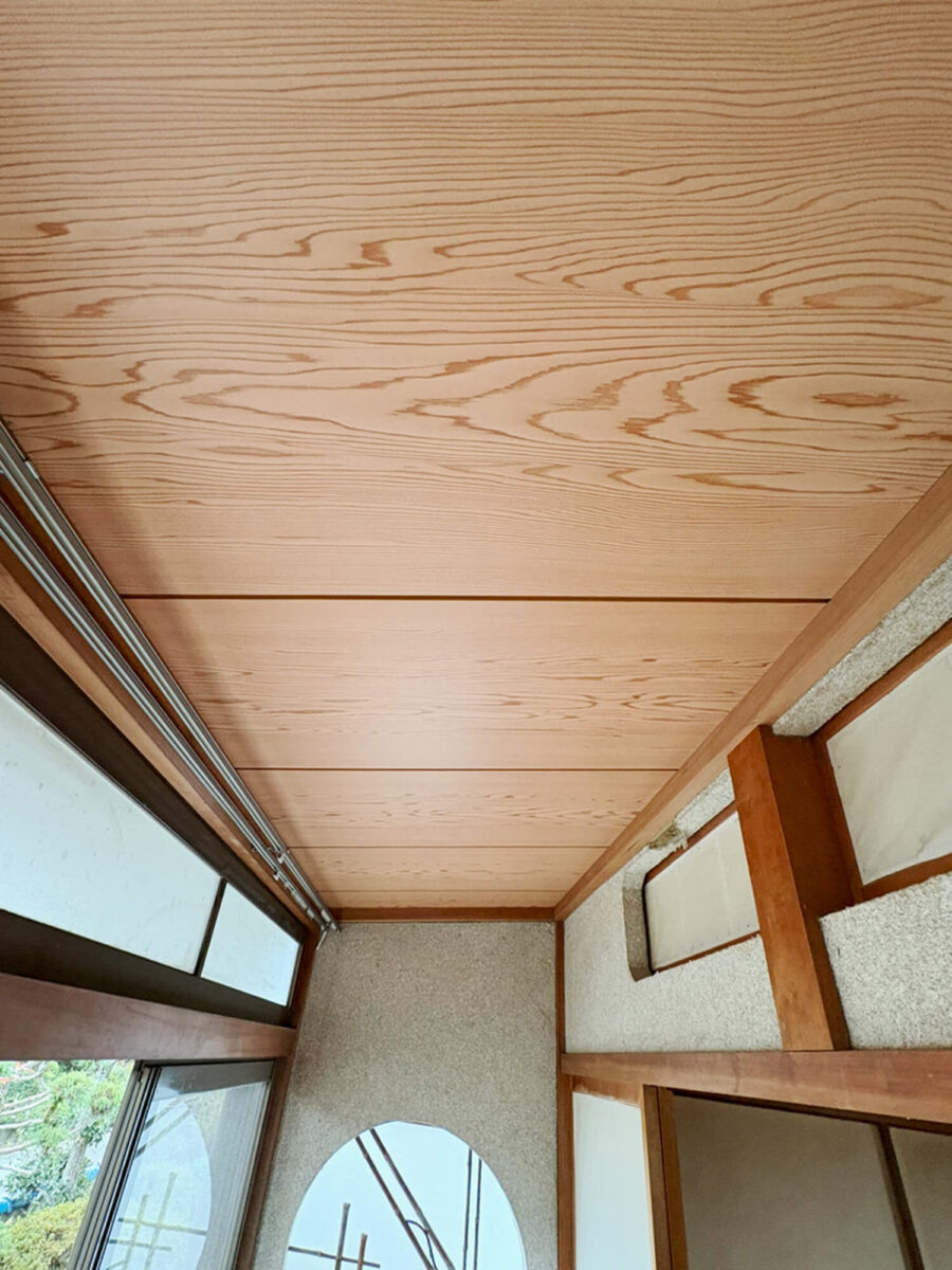 全体的に樋が古くなっていたのでこれを機に大屋根部の樋はすべて取り替え、めくれてしまった天井は新しいものに張り替えました。