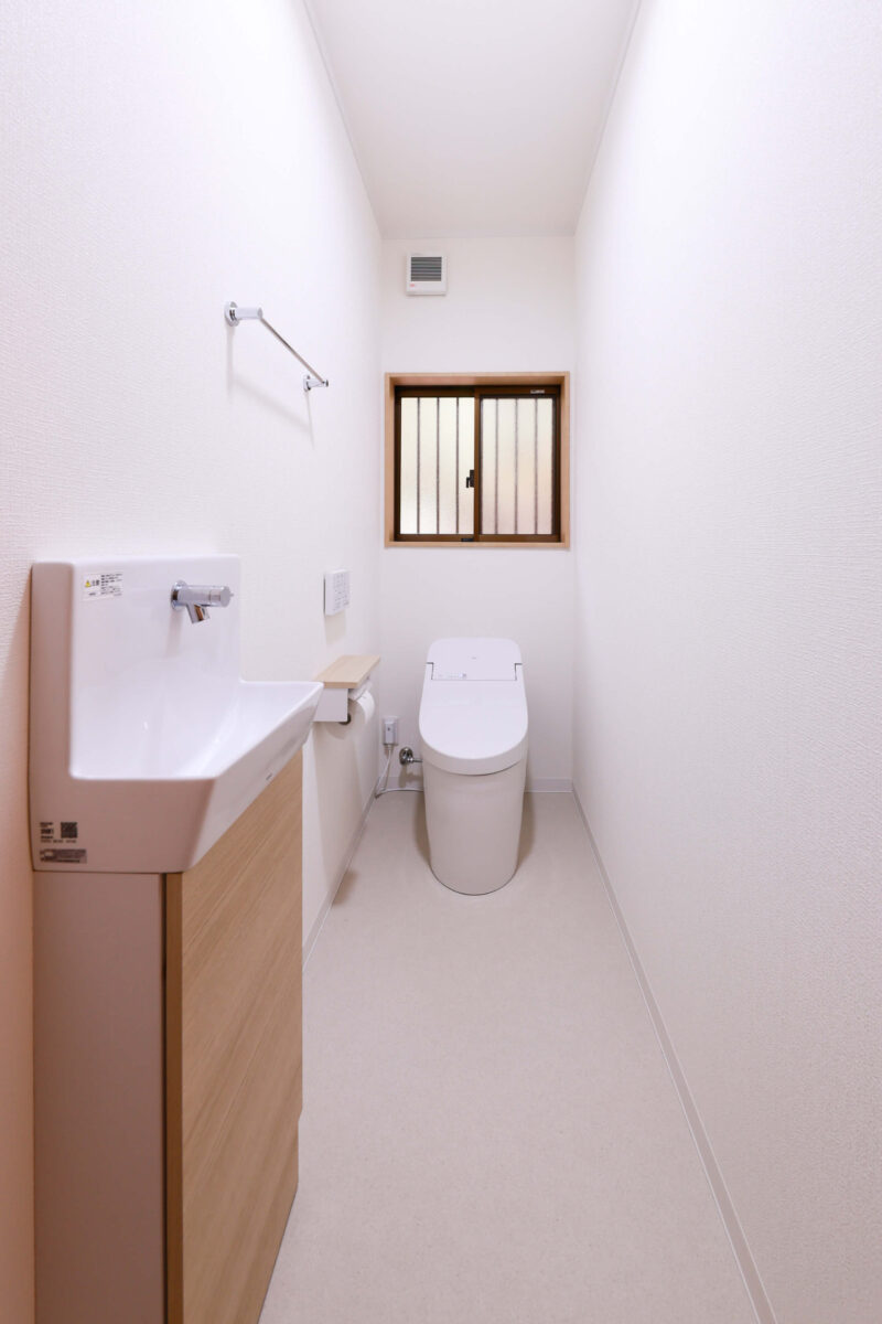 キッチンや洗面台等も入替し、トイレは手洗いを別に設けた洋式を作らせて頂きました。