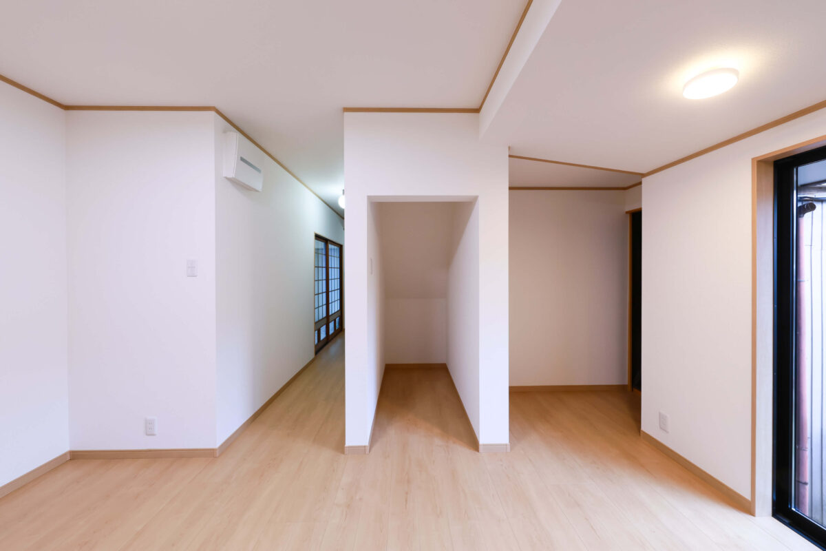 元々の和室や洋室を改装し、リビングと寝室・ウォークインクローゼットなどを作らせて頂きました。