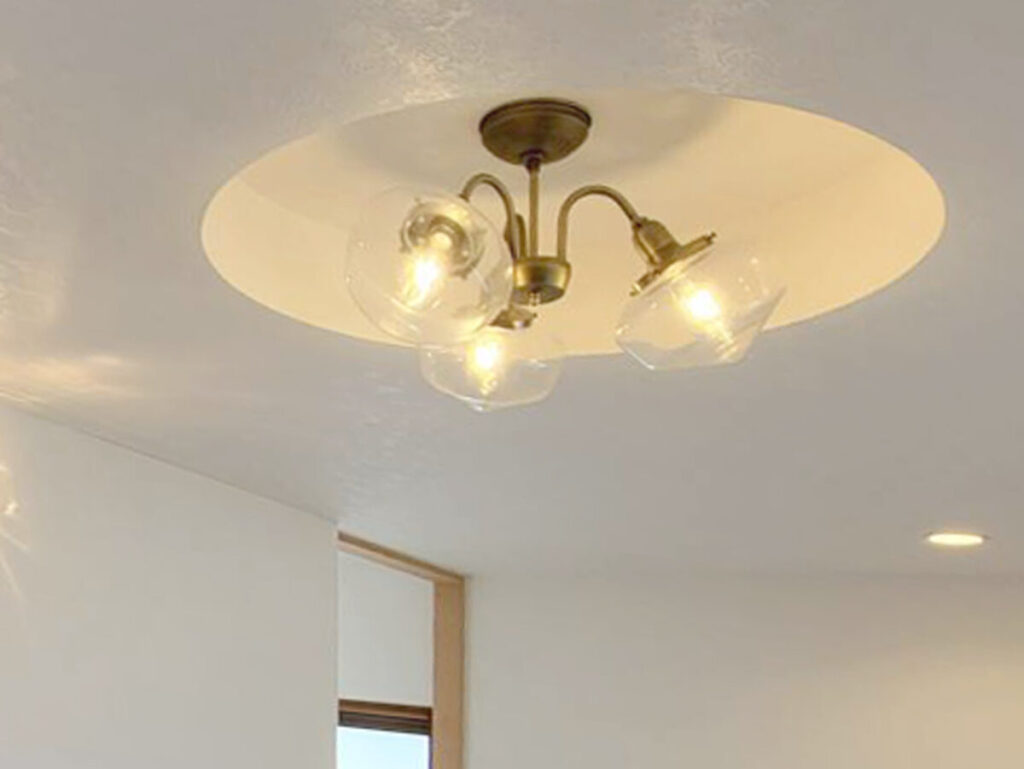 天井一部を折り上げ天井にし、照明器具が納まるようにしました。