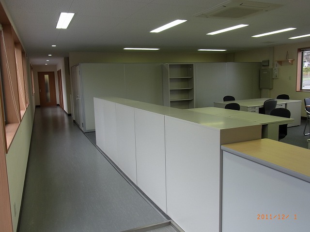 工場棟は当初3棟計画であったものを1棟にまとめて、結果YSSシステム建築の価格的なメリットが出せた工場となりました。工場棟にはホイストクレーンを設置する事で重量物を吊る事も可能としています。