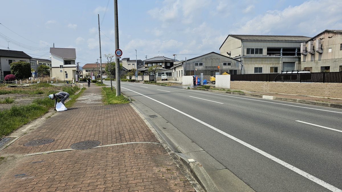 昨日より鉄骨建て方を開始しております。来週に一部残して鉄骨完了となっております。先週現場一斉清掃としまして前面道路の清掃を行いました。