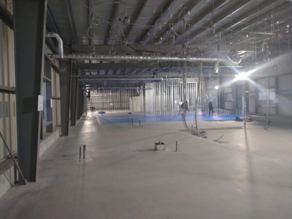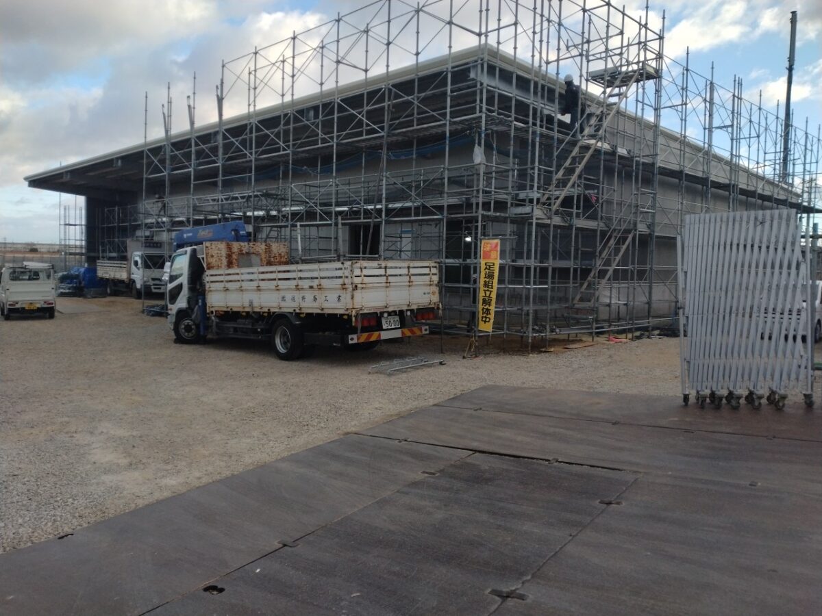 今週、足場解体及び内部電気配線を行いました。来週より軽鉄工事に着手します。