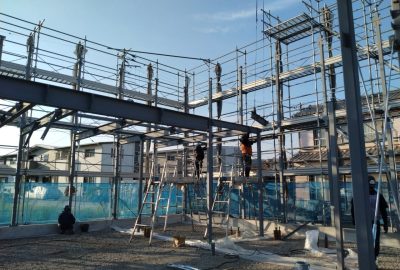 今後の予定としましては、12日から鉄骨まとめ、外部足場組み立てを行い、18日から屋根葺きを行います。