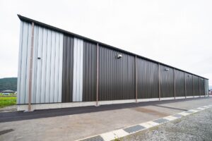 約4年前に営業用倉庫をお世話になった施主様より「前回と同じ大きさで建てたい」とのことで2棟目の営業用倉庫を建設させていただきました。