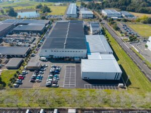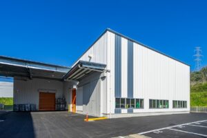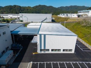既存工場敷地内に物流倉庫が完成しました。4年前に初めてシステム建築で物流倉庫を建築させていただいたお客様で、今回2棟目のシステム建築になります。工場稼働中の施工で制約もある中、工場の担当者様と大型車両の往来について細かく調整し、安全に十分配慮し施工させていただきました。